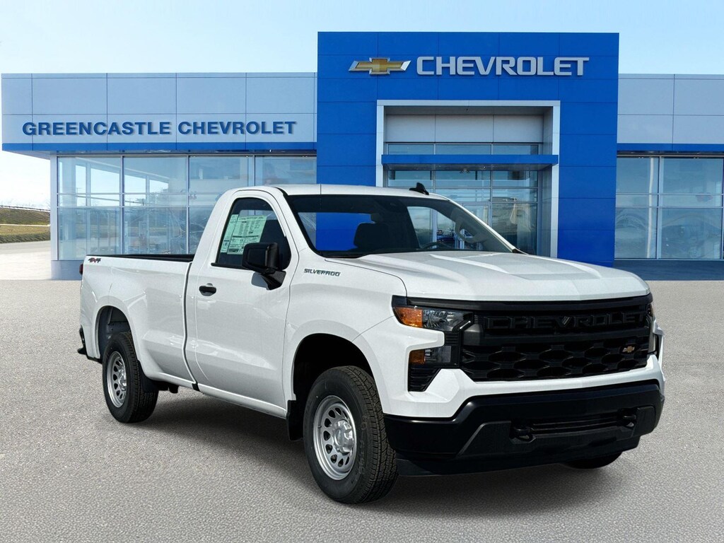This New 2026 Chevrolet Silverado 1500 Work Truck, is Summit White in color with an JET BLACK interior. Stock Number M262458. You can connect with us by calling 717-788-3115. Important Package and Feature Information Preferred Equipment Group 1WT4-Way Manual Driver Seat AdjusterLocking TailgatePower Front Windows with Passenger Express DownSolar Absorbing Tinted GlassRemote Keyless EntryPower Front Windows with Driver Express Up/down40/20/40 Front Split Bench SeatRubberized-Vinyl Floor CoveringBluetooth For PhoneInside Rearview Mirror with TiltHeated Power-Adjustable Outside MirrorsElectronic Cruise ControlManual Tilt Wheel Steering ColumnSingle-Speed Transfer CaseChevy Safety Assist255/70R17 AS BW TiresStandard TailgateManual Tailgate Function with No EZ Lift17" X 8" Ultra Silver Painted Steel WheelsVinyl Seat TrimTeen DriverSiriusXM Delete3.5" Monochromatic Display Driver Info CenterOnStar Services CapableTire Pressure Monitoring SystemHD Rear Vision CameraFront Frame-Mounted Black Recovery HooksBlack (semi-Gloss) Front BumperBlack (semi-Gloss) Rear Bumper Safety and Security Forward collision mitigation - Forward thinking. You look away for just a second and suddenly the vehicle in front of you has stopped. That's when the forward collision mitigation system comes to life. When it senses an impending impact, it will activate a combination of features to help prevent or reduce the severity of an accident. Forward collision mitigation is always looking ahead. Pedestrian impact prevention - An extra step toward safety. Pedestrians don't always stop, look, and listen, but with Pedestrian Impact Prevention, your vehicle is equipped to better see them and avoid them. This system constantly monitors the road ahead to identify and track pedestrians. It projects that image to an interior display screen, AND should an impact become likely, Pedestrian impact prevention takes steps to avoid a collision. Rear camera - Watching your back! The rear camera helps you see obstacles and hazards you otherwise couldn't by showing enhanced images of what is behind you. The rear camera is an extra set of eyes that's both convenient and safe.Technology and Telematics Apple CarPlay/Android Auto smart device wireless mirroring Mobile hotspot - WiFi on the fly. Connect your devices to the Internet through your vehicles private mobile hotspot and take the internet wherever your journey takes you, without eating up your data allowance. Find the hotspot with mobile hotspot. EMISSIONS, COLORADO, CONNECTICUT, DELAWARE, MAINE, MARYLAND, MASSACHUSETTS, MINNESOTA, NEVADA, NEW JERSEY, NEW MEXICO, NEW YORK, OREGON, PENNSYLVANIA, RHODE ISLAND, VERMONT AND WASHINGTON STATE REQUIREMENTS, ENGINE, 5.3L ECOTEC3 V8, TRANSMISSION, 10-SPEED AUTOMATIC, ELECTRONICALLY CONTROLLED, REAR AXLE, 3.23 RATIO, WHEELS, 17" X 8" (43.2 CM X 20.3 CM) ULTRA SILVER PAINTED STEEL, SUMMIT WHITE, AUTO-LOCKING REAR DIFFERENTIAL At Greencastle Chevrolet, were here to Serve you! Our staff is 100% dedicated to customer satisfaction and we understand that you need clear, transparent information throughout the car buying process. With our live market pricing philosophy, we offer the right cars at the right price, and the transparency to back it up! FINANCING OPTIONS: Take advantage of our attractive low-rate financing options. Our access to various Credit Unions and National Banks can provide financing for most credit levels. We can tailor a finance package to fit your needs. To get started, complete our secure online credit application.