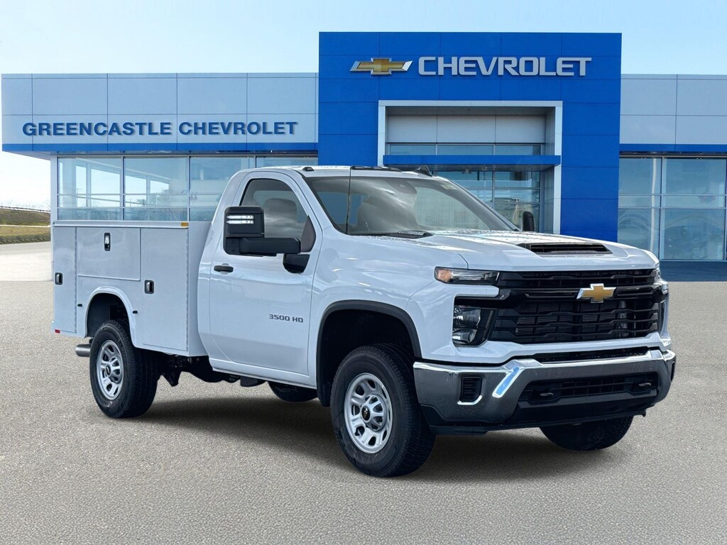 PICKUP BED, DELETE, EMISSIONS, COLORADO, CONNECTICUT, DELAWARE, MAINE, MARYLAND, MASSACHUSETTS, MINNESOTA, NEVADA, NEW JERSEY, NEW YORK, OREGON, PENNSYLVANIA, RHODE ISLAND, VERMONT AND WASHINGTON STATE REQUIREMENTS, ENGINE, DURAMAX 6.6L TURBO-DIESEL V8, B20-DIESEL COMPATIBLE, TRANSMISSION, 10-SPEED AUTOMATIC, GVWR, 11,800 LBS. (5352 KG) WITH SINGLE REAR WHEELS, REAR AXLE, 3.42 RATIO, WHEELS, 18" (45.7 CM) PAINTED STEEL, SUMMIT WHITE, WT CONVENIENCE PACKAGE, SNOW PLOW PREP/CAMPER PACKAGE, BUMPER, FRONT CHROME, LAMPS, SMOKED AMBER ROOF MARKER, (LED), MIRRORS, OUTSIDE POWER-ADJUSTABLE VERTICAL TRAILERING WITH HEATED AND AUTO-DIMMING UPPER GLASS, SIRIUSXM TRIAL SUBSCRIPTION, UPFITTER SWITCH KIT, (5), POWER OUTLET, INTERIOR, 120-VOLT, REAR CAMERA KIT At Greencastle Chevrolet, were here to