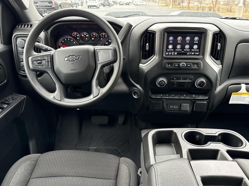This 2024 Chevrolet Silverado 1500 Custom Trail Boss, has a Black exterior and an Jet Black interior color. 12,028 miles. Stock Number UM328393. You can connect with us by calling 717-788-3115. No Accidents! One Owner! OTHER NOTABLE FEATURES AND OPTIONS YOU SHOULD KNOW ABOUT: Custom Convenience PackageRemote Vehicle Starter SystemElectric Rear-Window DefoggerEZ Lift Power Lock and Release TailgateLED Cargo Area LightingTheft Deterrent System (unauthorized Entry)Preferred Equipment Group 2CX10-Way Power Driver Seat with LumbarRear 60/40 Folding Bench Seat (folds Up)Power Front Windows with Passenger Express DownPower Rear Windows with Express DownDeep-Tinted GlassRemote Keyless EntryPower Front Windows with Driver Express Up/down40/20/40 Front Split-Bench SeatColor-Keyed Carpeting Floor CoveringFront Rubberized Vinyl Floor MatsRear Rubberized-Vinyl Floor MatsBluetooth For PhoneAuto-Locking Rear DifferentialElectronic Cruise Control120-Volt Interior Power OutletTurboMax EngineElectrical Steering Column LockManual Tilt Wheel Steering Column2-Speed Transfer CaseCustom Convenience PackageChevy Safety AssistStandard TailgateLT275/65R18C MT BW Tires18" X 8.5" Black Painted Aluminum WheelsCloth Seat TrimSiriusXM RadioDual Rear USB Ports (charge Only)3.5" Monochromatic Display Driver Info CenterOnStar and Chevrolet Connected Services CapablePerformance Red Recovery HooksHD Rear Vision CameraSuspension PackageTrailering Package Safety and Security Forward collision mitigation - Forward thinking. You look away for just a second and suddenly the vehicle in front of you has stopped. That's when the forward collision mitigation system comes to life. When it senses an impending impact, it will activate a combination of features to help prevent or reduce the severity of an accident. Forward collision mitigation is always looking ahead. Pedestrian impact prevention - An extra step toward safety. Pedestrians don't always stop, look, and listen, but with Pedestrian Impact Prevention, your vehicle is equipped to better see them and avoid them. This system constantly monitors the road ahead to identify and track pedestrians. It projects that image to an interior display screen, AND should an impact become likely, Pedestrian impact prevention takes steps to avoid a collision. Rear camera - Watching your back! The rear camera helps you see obstacles and hazards you otherwise couldn't by showing enhanced images of what is behind you. The rear camera is an extra set of eyes that's both convenient and safe.Technology and Telematics Wireless Apple CarPlay/Android Auto smart device wireless mirroring Mobile hotspot - WiFi on the fly. Connect your devices to the Internet through your vehicles private mobile hotspot and take the internet wherever your journey takes you, without eating up your data allowance. Find the hotspot with mobile hotspot. EMISSIONS, CONNECTICUT, DELAWARE, MAINE, MARYLAND, MASSACHUSETTS, NEW JERSEY, NEW YORK, OREGON, PENNSYLVANIA, RHODE ISLAND, VERMONT AND WASHINGTON STATE REQUIREMENTS, ENGINE, TURBOMAX, TRANSMISSION, 8-SPEED AUTOMATIC, ELECTRONICALLY CONTROLLED, GVWR, 7000 LBS. (3175 KG), REAR AXLE, 3.42 RATIO, WHEELS, 18" X 8.5" (45.7 CM X 21.6 CM) HIGH GLOSS BLACK PAINTED ALUMINUM, TIRES, LT275/65R18C BLACKWALL GOODYEAR WRANGLER TERRITORY MT, TIRE, SPARE 265/70R17SL ALL-SEASON, BLACKWALL, BLACK, SEATS, FRONT 40/20/40 SPLIT-BENCH, JET BLACK, CLOTH SEAT TRIM, AUDIO SYSTEM, CHEVROLET INFOTAINMENT 3 SYSTEM, LPO, ASSIST STEPS - 4" BLACK - ROUND, WHEELHOUSE LINERS, REAR, STEERING COLUMN LOCK, ELECTRICAL At Greencastle Chevrolet, were here to Serve you! Our staff is 100% dedicated to customer satisfaction and we understand that you need clear, transparent information throughout the car buying process. With our live market pricing philosophy, we offer the right cars at the right price, and the transparency to back it up! FINANCING OPTIONS: